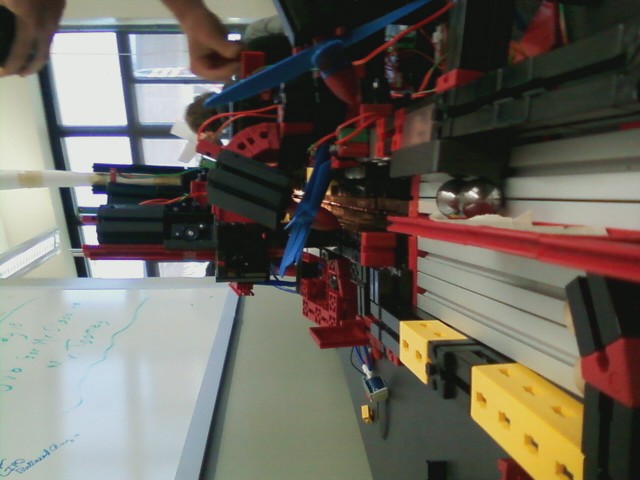 The first was with the pioneering of the modern pneumatics. Pneumatics is the use of air pressure in order to move pistons and activate machinery. While my team was building the structure of the machine, I explored the realm of pneumatics because I realized that if I can get a functioning system with it then I can use air pressure to help my team achieve the goal of success. Using experimentation with channeling air pressure through tubes and pistons and advice from my teacher, I eventually created a working system with pneumatics that would eventually be used throughout the class. I basically created a motor powered rotor that would turn a crank and then create air pressure in a fast moving piston. The air pressure would then travel through a tube towards a containment tank, and then it would travel through a couple more tubes and would get funneled into two air blockers. Using electricity, these air blockers would create a detour for the pressure, and would force it through an alternate intersecting tube that would channel the air pressure to a couple of pistons. Using a computer program allowed the piston to move upward and downward due to air pressure and a timer.